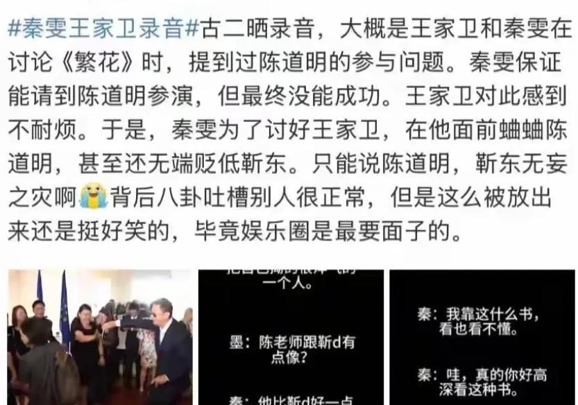 秦雯在对话中称陈道明为“极品中的极品,阴阳同体”,措辞之刻薄令人咋舌。
