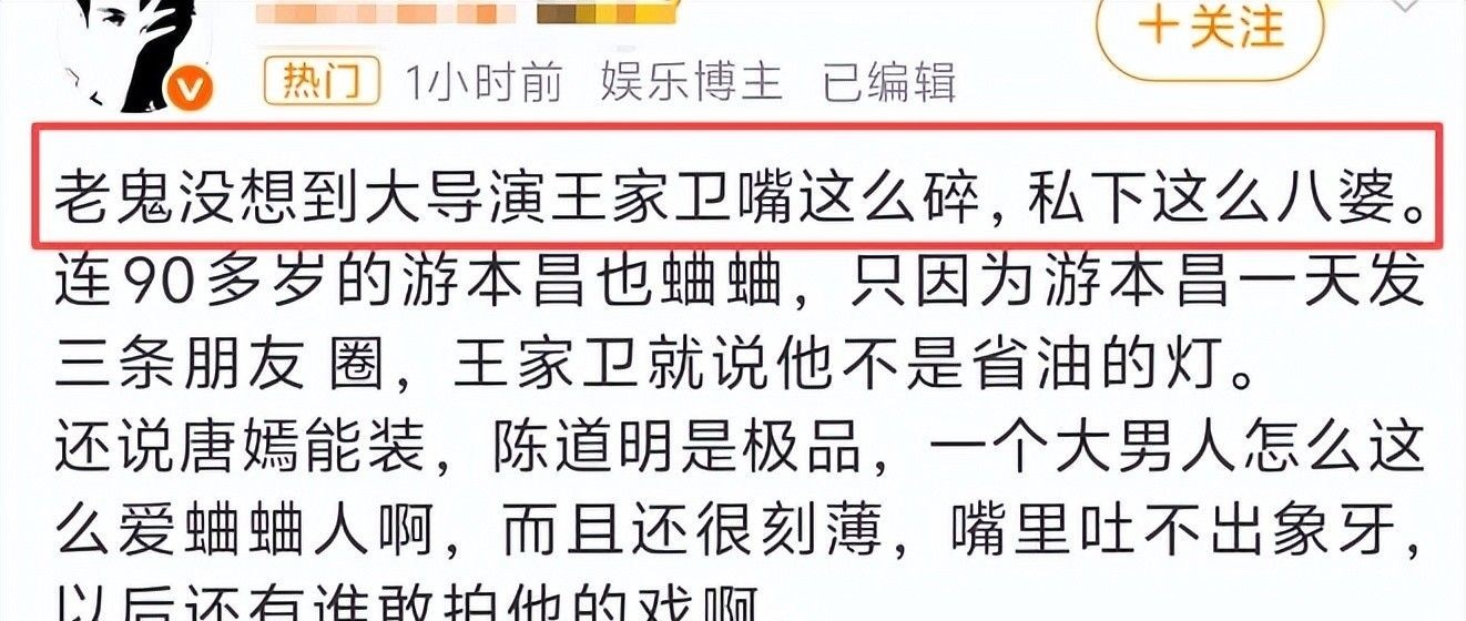 王家卫竟在录音中讽刺他“经营朋友圈、一天发三条、不是省油的灯”。