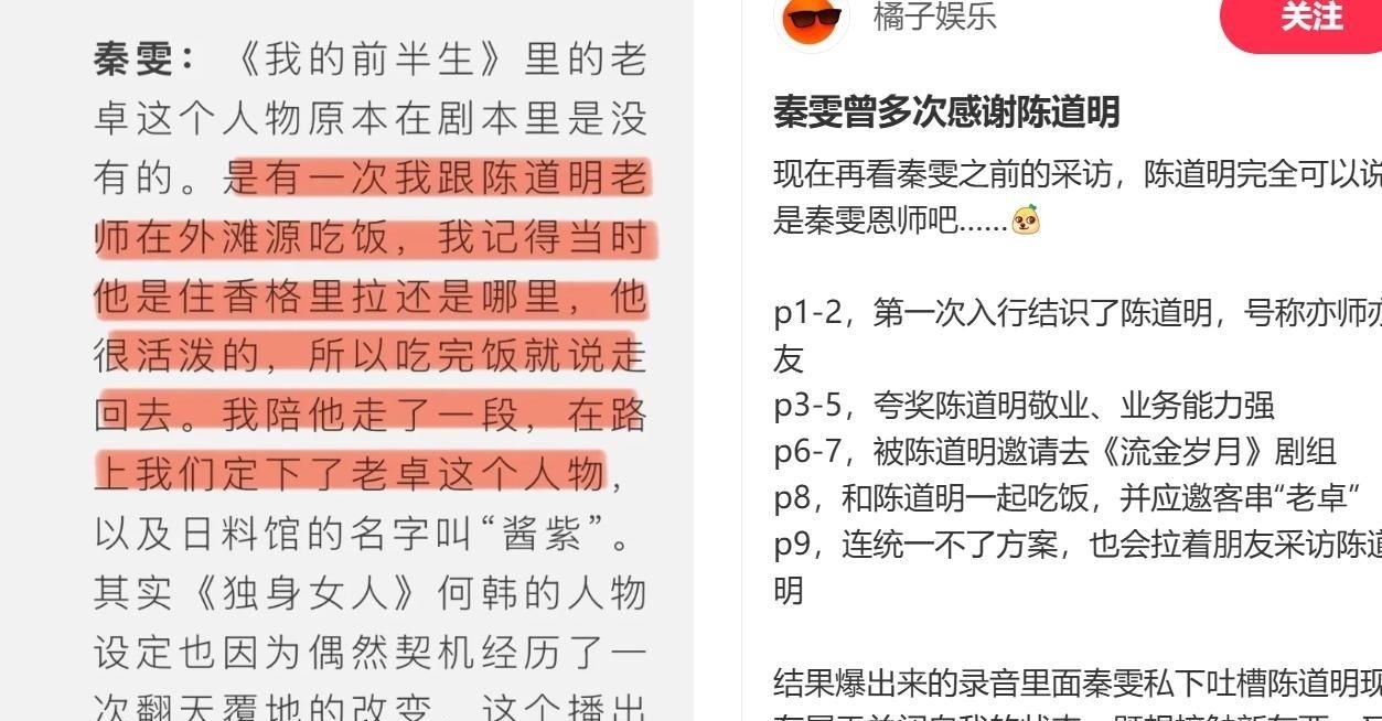 须知,陈道明曾是秦雯职业生涯的重要引路人。
